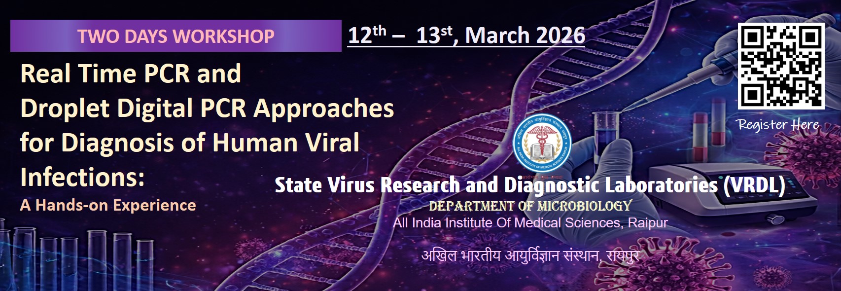 The Two-Day Workshop on “Real Time PCR and Droplet Digital PCR Approaches for Diagnosis of Human Viral Infections: A Hands-on Experience” is designed to provide participants with comprehensive practical exposure to advanced molecular diagnostic techniques widely used in clinical and research laboratories. Emphasizing experiential learning, the workshop covers conventional and automated nucleic acid extraction methods, quantification and quality assessment of DNA/RNA, Real-Time PCR assay design and optimization, and the application of Droplet Digital PCR (ddPCR) for precise and absolute viral load quantification. Participants will gain guided laboratory experience in workflow setup, data analysis, result interpretation, troubleshooting, and quality control practices essential for accurate and reliable viral detection. By combining strong theoretical concepts with intensive practical training, the program effectively connects classroom learning to real-world diagnostic practice, empowering students, researchers, clinicians, and laboratory professionals with the expertise, technical proficiency, and confidence essential for modern molecular diagnostics.
