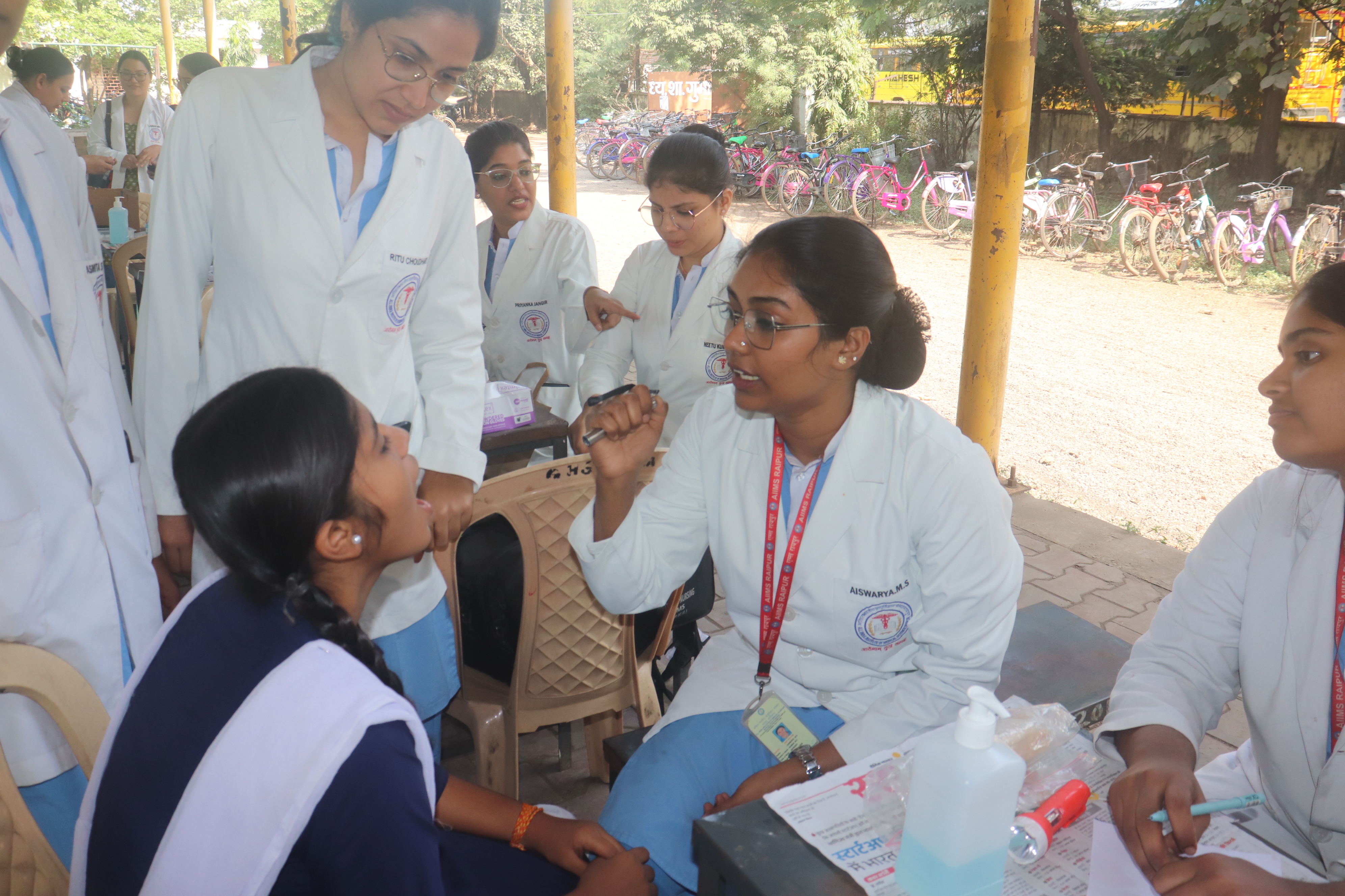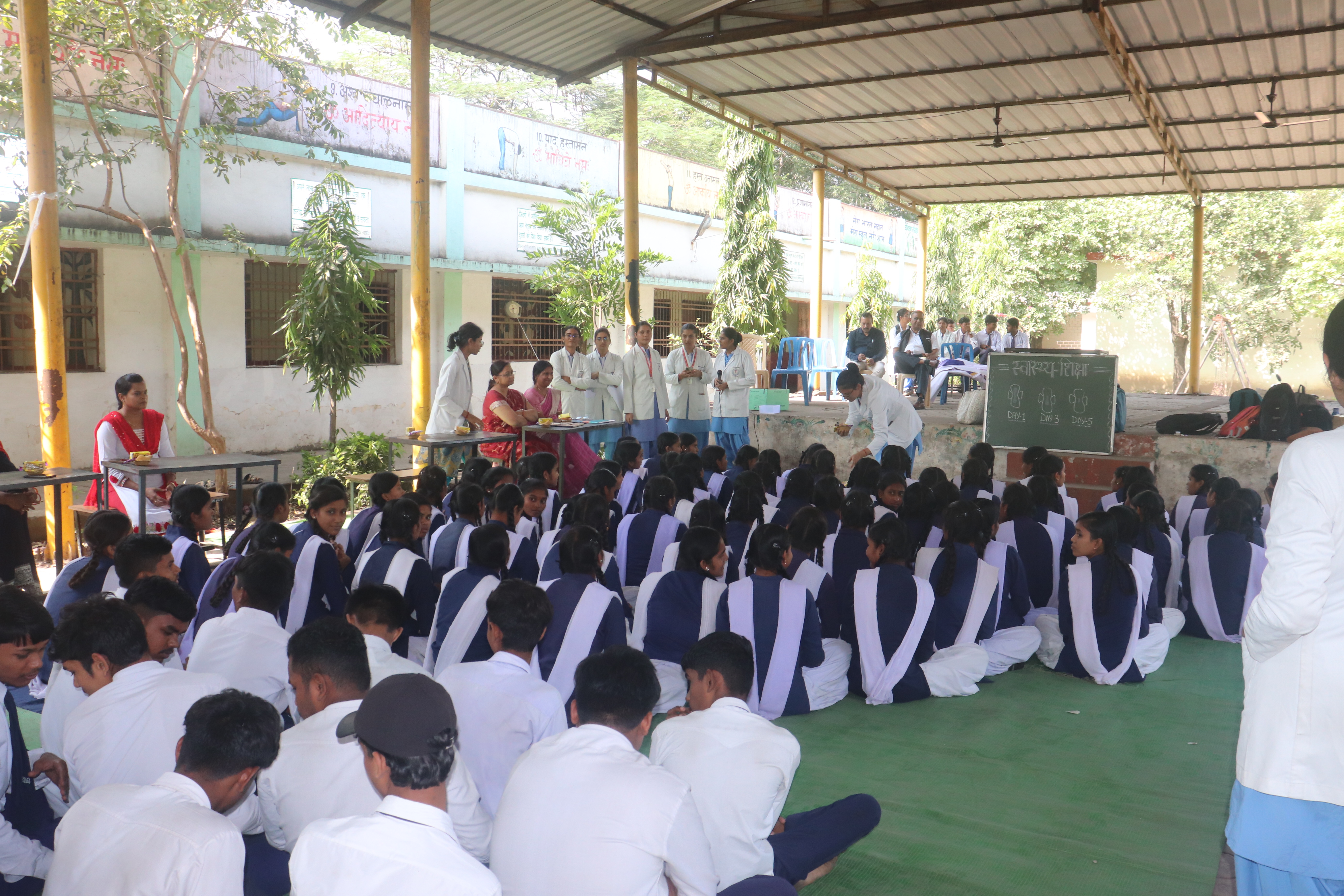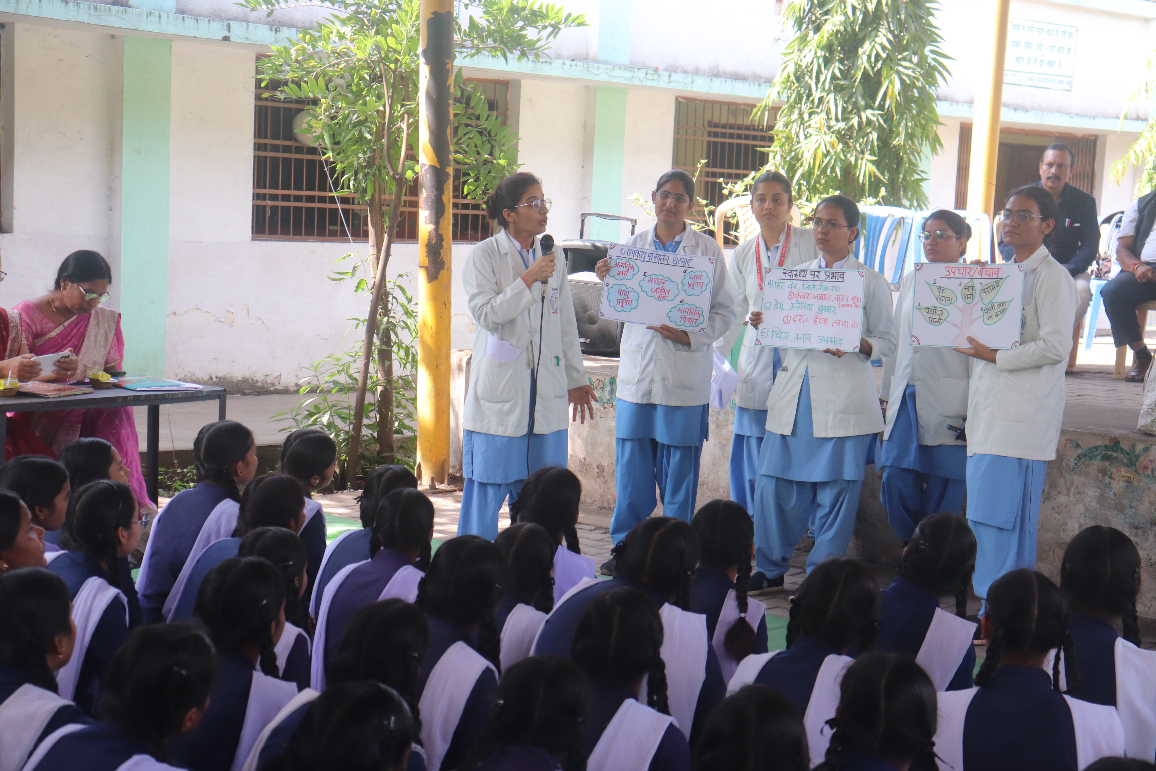 School Health Program was successfully organized and conducted by the 4th year B.Sc. Nursing students (Batch 2021) along with M.Sc. Nursing 1st and 2nd year students specializing in Obstetrics and Gynecological Nursing, Pediatric Health Nursing, and Mental Health Nursing of the College of Nursing, AIIMS Raipur, at Government Higher Secondary School, Guma on 7th November 2025. The program was sponsored by the Rotary Club of Raipur. The main objective of the program was to promote health awareness among school children, identify common health issues, and encourage healthy lifestyle practices. The activities for the day included a comprehensive health assessment of school students, covering general physical examination, nutritional status, oral hygiene, and vision screening. This was followed by health education sessions on important topics such as Climate Change and Its Effects on Human Health, Menstrual Hygiene Management, and Prevention of Substance Abuse. The sessions were made more engaging and student-friendly through interactive games, quizzes, and demonstrations, ensuring active participation and better understanding of the topics. A poster competition on the theme Climate Change Affecting Human Health was also organized to encourage creativity and environmental awareness among students. Participants presented innovative and informative posters, and winners were felicitated with prizes sponsored by the Rotary Club of Raipur. Additionally, distribution of snacks to all participating students was also kindly sponsored by the Rotary Club of Raipur, making the event enjoyable and memorable for everyone. The program concluded with a vote of thanks, expressing appreciation to the Rotary Club of Raipur for their generous support, the school authorities for their collaboration, and the faculty members of the College of Nursing, AIIMS Raipur, for their guidance and supervision.Overall, the School Health Program at Government Higher Secondary School, Guma proved to be a meaningful and interactive initiative that enhanced the students’ health awareness and provided valuable hands-on learning experience for the nursing students, fostering community engagement and health promotion.